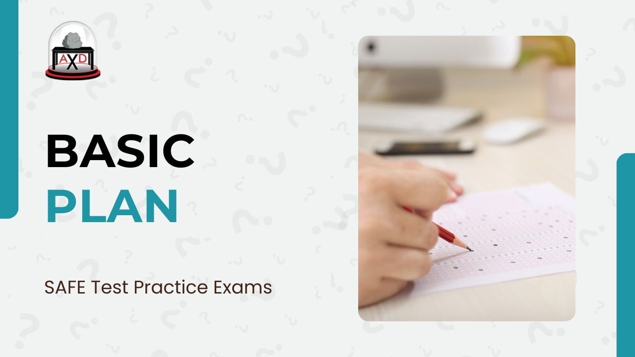 The Basic Plan affords you six-month access to eight exceptional practice exams in timed and untimed mode along with free admission to the SAFE Mortgage Exam Training Facebook Group.
